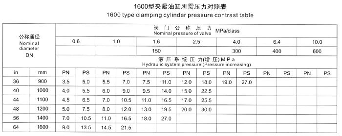 The test range of valve nominal diameter and nominal pressure for JLD-1600 model