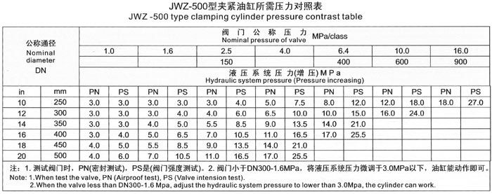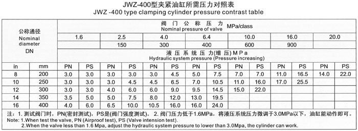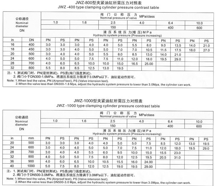 五、測試閥門時,首先根據(jù)被試閥門試驗壓力,要求參照《壓緊油缸所需壓力對照表》中液壓壓緊系統(tǒng)壓力值,進行增壓壓力調節(jié),嚴禁增壓壓力值超高、防止被試閥門變形損壞。